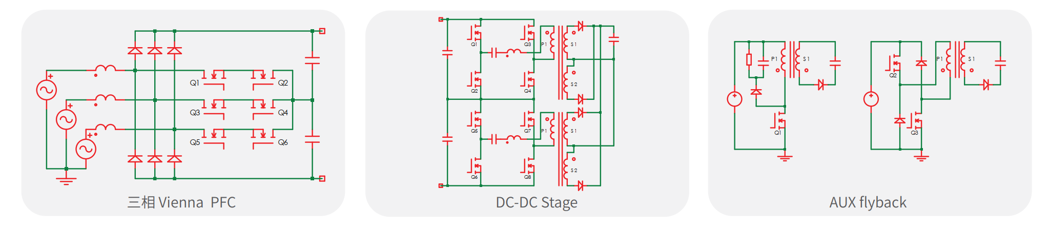 通常,高功率直流充電器設(shè)計(jì)會(huì)使用交流-直流和直流-直流轉(zhuǎn)換器將輸入的三相交流電轉(zhuǎn)換為充電汽車所需的直流電壓250V-750V,構(gòu)建15 kW 至 30 kW子功率模塊。