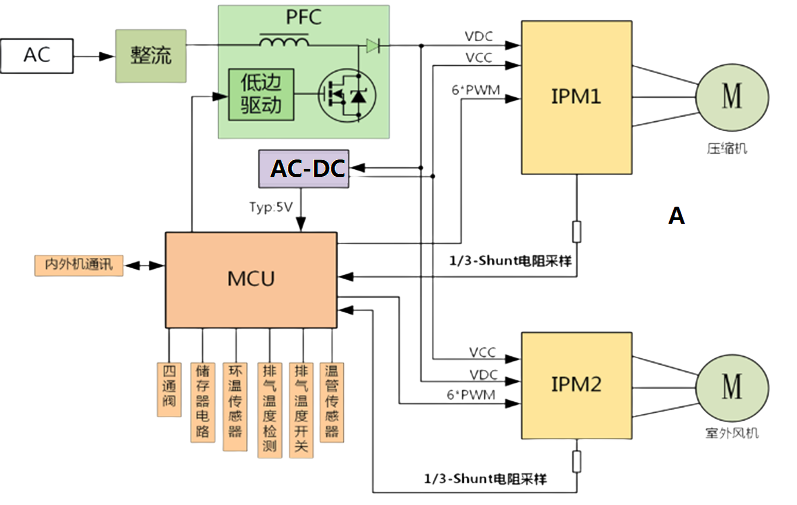 變頻空調(diào)是指加裝了變頻器的常規(guī)空調(diào)。變頻空調(diào)的主機(jī)是自動(dòng)進(jìn)行無(wú)極變速的,將電網(wǎng)50HZ的電流經(jīng)整流濾波后得到310V左右的直流電,此直流電經(jīng)過(guò)逆變后,就可以得到用以控制壓縮機(jī)運(yùn)轉(zhuǎn)的變頻電源,這就將50赫茲的電網(wǎng)頻率轉(zhuǎn)變?yōu)?0-130赫茲。相比于定頻空調(diào),變頻空調(diào)優(yōu)點(diǎn)體現(xiàn)在節(jié)能、噪聲低、溫控精度高、電壓要求低等。