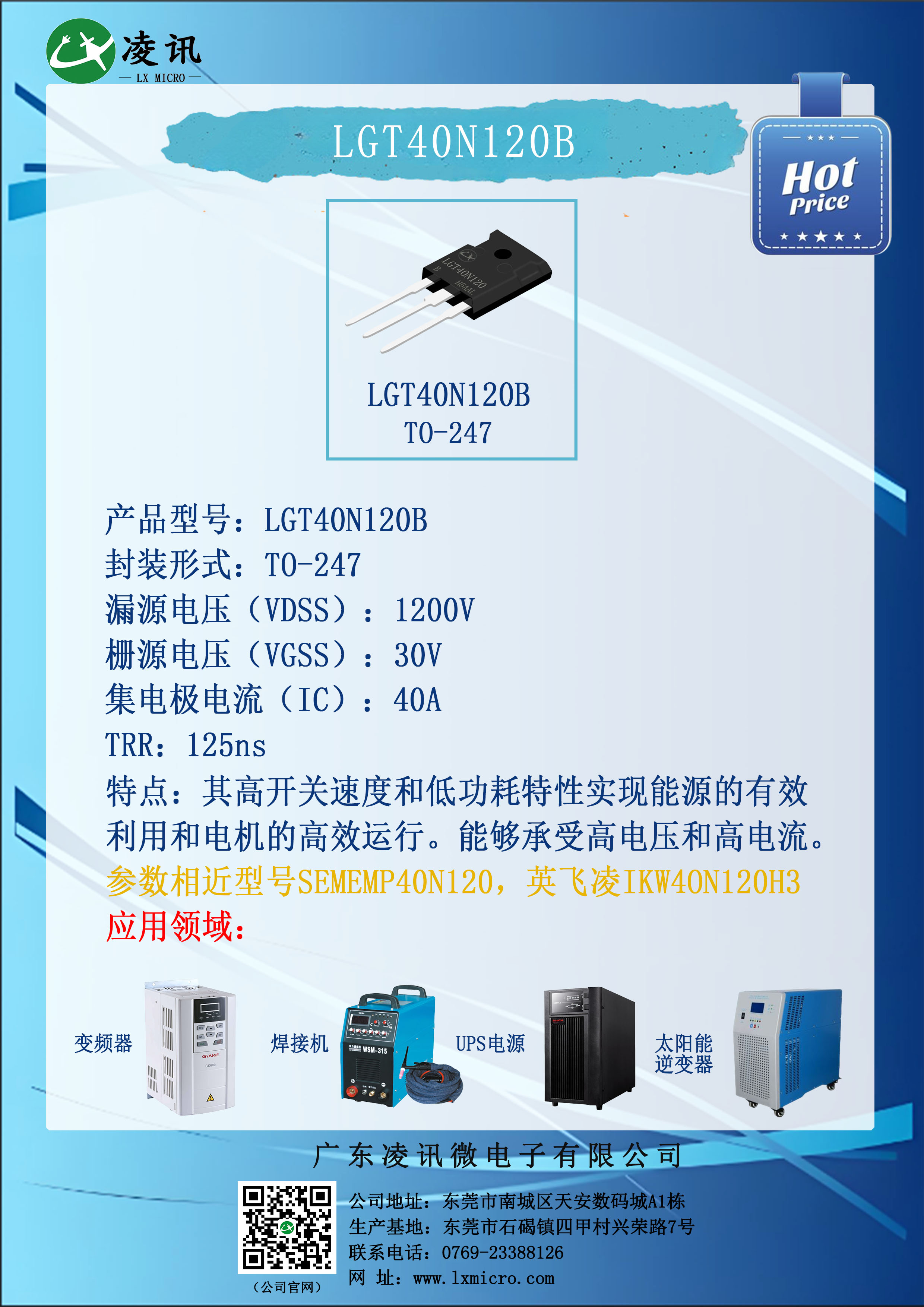 凌訊微IGBT系列優(yōu)勢(shì)產(chǎn)品LGT40N120基本電性參數(shù):